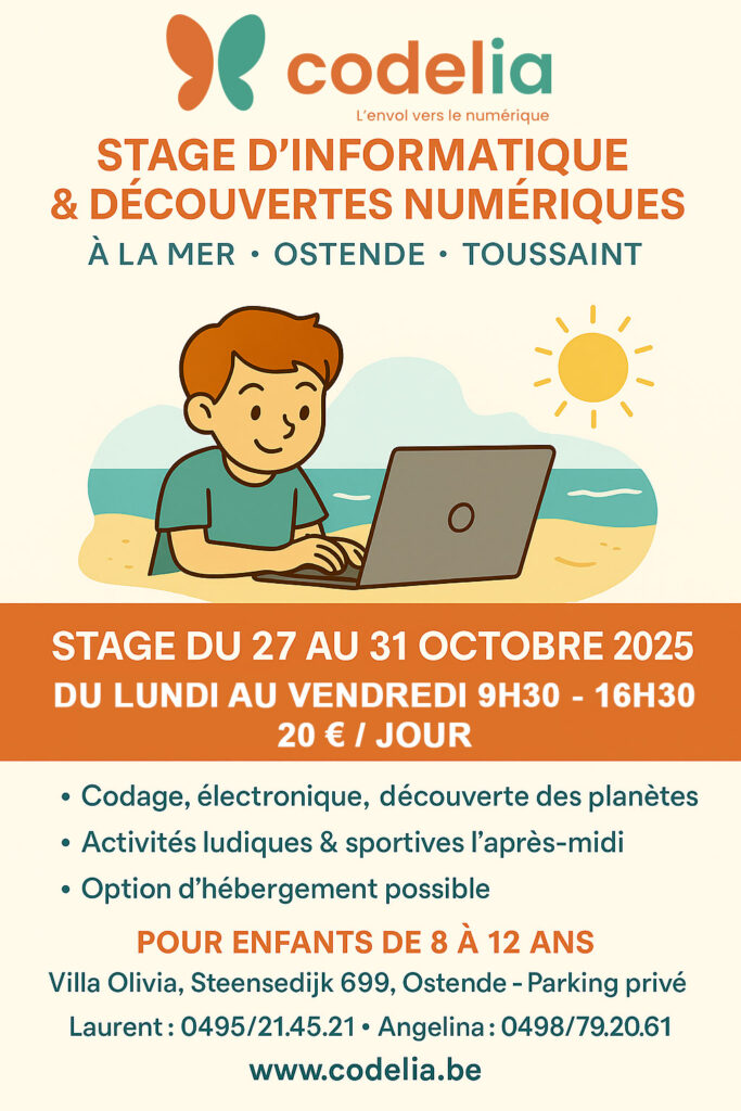 Stage d’informatique pour enfant de 8 à 12 ans à la Toussaint 2025 :